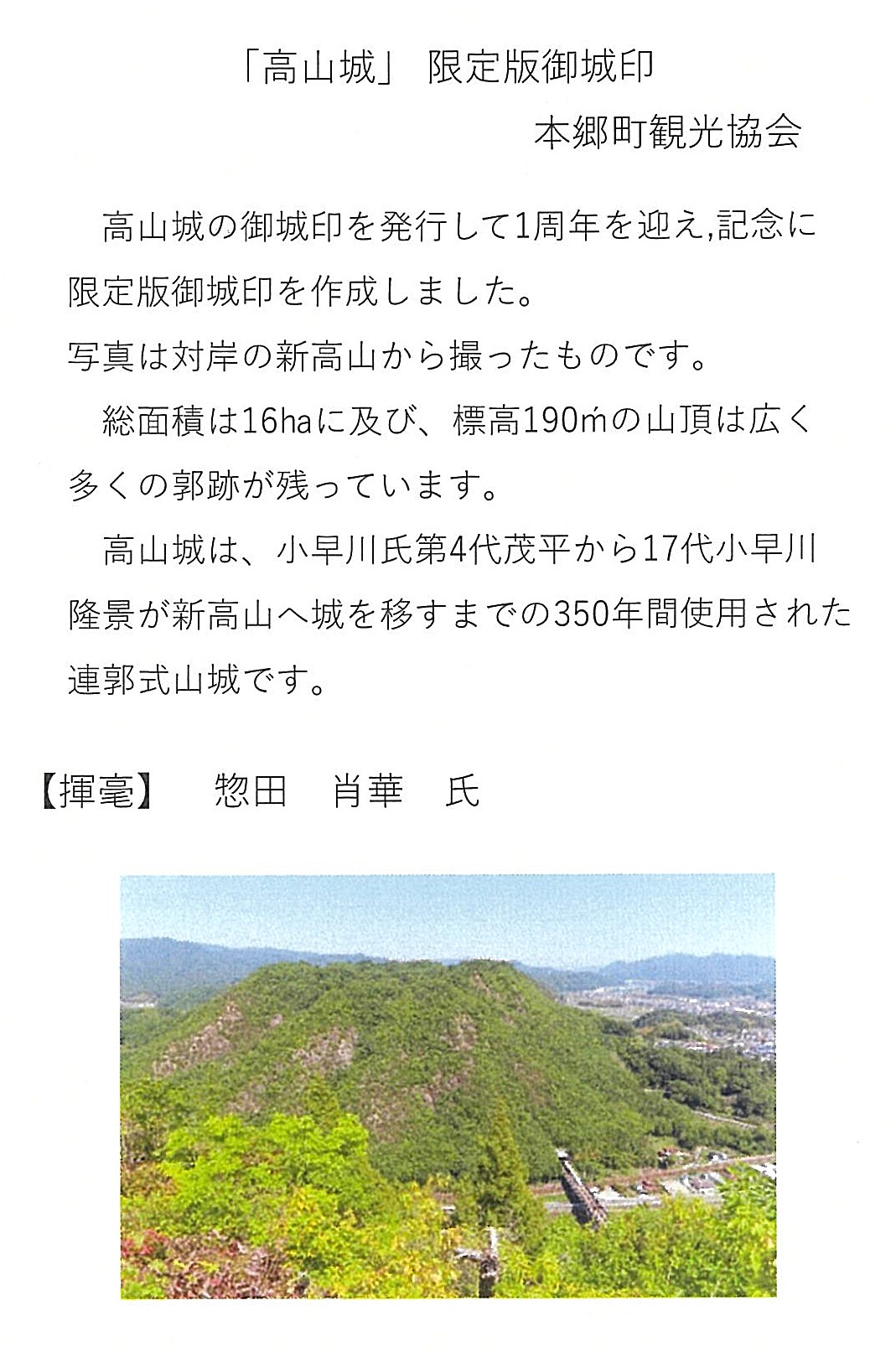 ☆ 高山城の御城印販売一周年となり、高山城の御城印(限定版)を販売します。